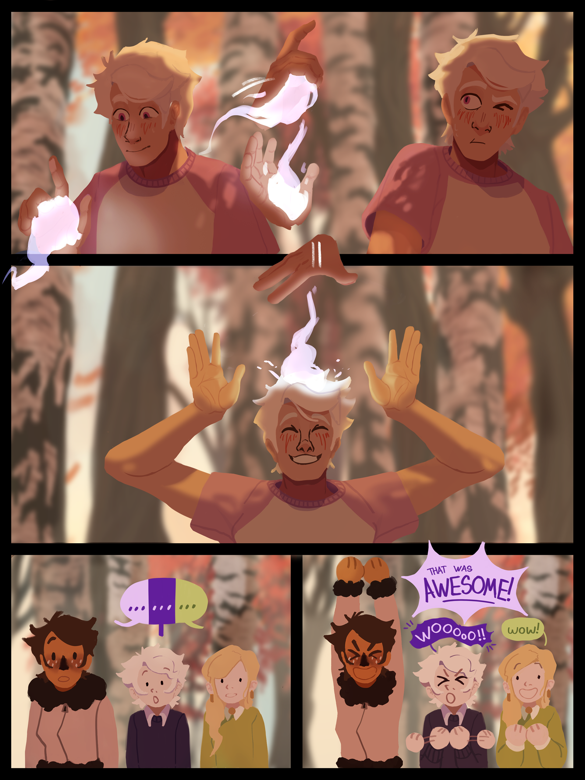 is an experimentation in page and panel breaks! It features original characters and uses a ball of psychic energy to help create lively momentum, guiding the viewer's eye through the comic.